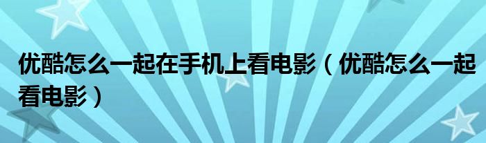 大家好,跳跳为你解答以上问题。优酷怎么一起在手机上看电影,优酷怎么一起看电影这个问题很多人还不知道,现在让我们一起来看看吧!