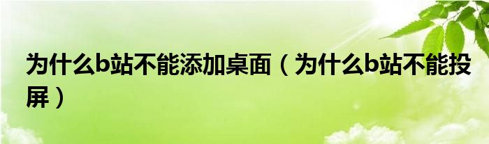 大家好,跳跳为你解答以上问题。为什么b站不能添加桌面,为什么b站不能投屏这个问题很多人还不知道,现在让我们一起来看看吧!