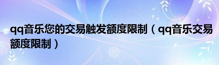 大家好,跳跳为你解答以上问题。qq音乐您的交易触发额度限制,qq音乐交易额度限制这个问题很多人还不知道,现在让我们一起来看看吧!