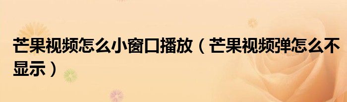 大家好,跳跳为你解答以上问题。芒果视频怎么小窗口播放,芒果视频弹怎么不显示这个问题很多人还不知道,现在让我们一起来看看吧!