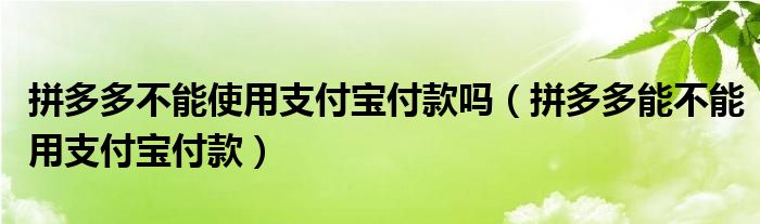 大家好,跳跳为你解答以上问题。拼多多不能使用支付宝付款吗,拼多多能不能用支付宝付款这个问题很多人还不知道,现在让我们一起来看看吧!