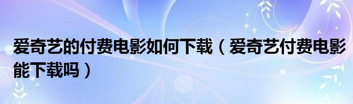 大家好,跳跳为你解答以上问题。爱奇艺的付费电影如何下载,爱奇艺付费电影能下载吗这个问题很多人还不知道,现在让我们一起来看看吧!