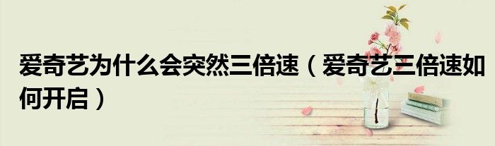 大家好,跳跳为你解答以上问题。爱奇艺为什么会突然三倍速,爱奇艺三倍速如何开启这个问题很多人还不知道,现在让我们一起来看看吧!