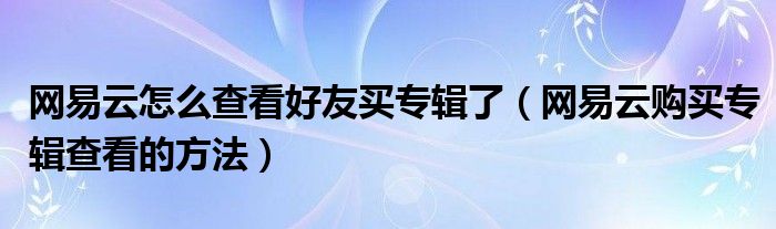 大家好,跳跳为你解答以上问题。网易云怎么查看好友买专辑了,网易云购买专辑查看的方法这个问题很多人还不知道,现在让我们一起来看看吧!
