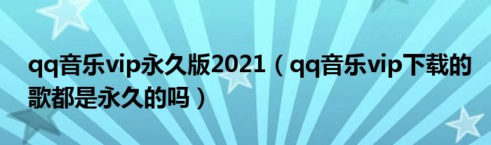 大家好,跳跳为你解答以上问题。qq音乐vip永久版2021,qq音乐vip下载的歌都是永久的吗这个问题很多人还不知道,现在让我们一起来看看吧!