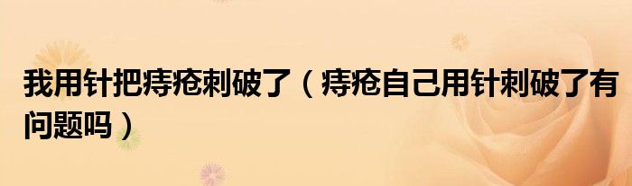 大家好,linda来为大家解答以上的问题。我用针把痔疮刺破了,痔疮自己用针刺破了有问题吗很多人还不知道,现在让我们一起来看看吧!