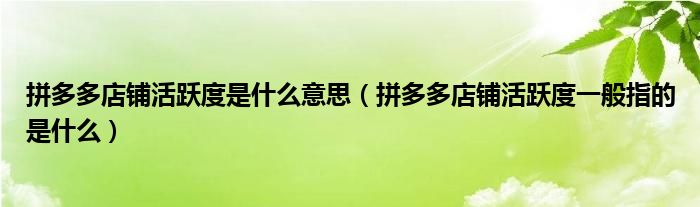 大家好,跳跳为你解答以上问题。拼多多店铺活跃度是什么意思,拼多多店铺活跃度一般指的是什么这个问题很多人还不知道,现在让我们一起来看看吧!
