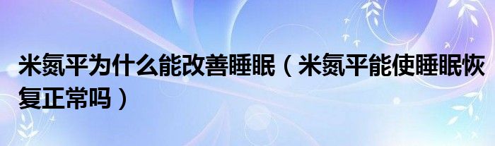 大家好,linda来为大家解答以上的问题。米氮平为什么能改善睡眠,米氮平能使睡眠恢复正常吗很多人还不知道,现在让我们一起来看看吧!