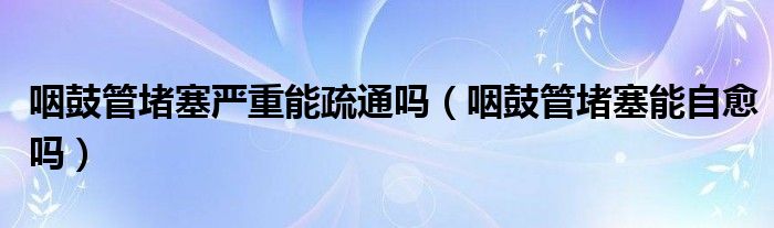 大家好,linda来为大家解答以上的问题。咽鼓管堵塞严重能疏通吗,咽鼓管堵塞能自愈吗很多人还不知道,现在让我们一起来看看吧!