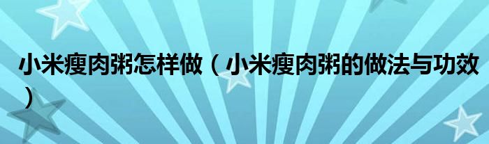 小米瘦肉粥怎样做(小米瘦肉粥的做法与功效)