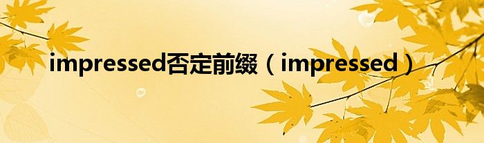 大家好,小晋来为大家解答以下问题,关于impressed否定前缀,impressed很多人还不知道,今天让我们一起来看看吧!