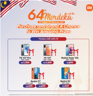 小米将其命名为“64th Merdeka with Mi”,这项活动让马来西亚人在购买选定的小米设备时可以享受特别优惠并获得额外礼物。例如,您可以购买小米10T Pro或红米Note 10S并获得一份神秘礼物。购买这些型号还可以让您享受 20000mAh 移动电源或 Mi True Wireless Earbuds Basic 2 的折扣。
