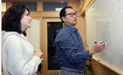 冷泉港实验室助理教授 Peter Koo 与研究生 Shushan Toneyan 在他的实验室。Koo 的团队研究称为深度神经网络 (DNN) 的机器学习 AI 如何工作。他开发了一种新方法来研究这些 DNN 如何学习和预测 RNA 序列中某些模式的重要性。