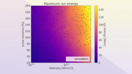 经过训练的神经网络充当代理模型来探索感兴趣的参数空间,特别是用于特征发现。演示了如何使用神经网络快速探索这个空间,在几个数量级上绘制离子能量对激光强度和脉冲持续时间 τ 的依赖性。