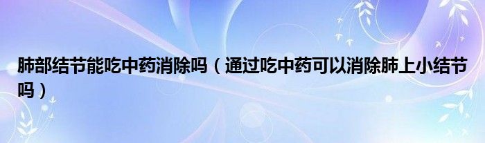 大家好,linda来为大家解答以上的问题。肺部结节能吃中药消除吗,通过吃中药可以消除肺上小结节吗很多人还不知道,现在让我们一起来看看吧!