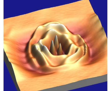 然后研究人员使用扫描隧道显微镜对畜栏内外的电子状态进行成像。与理论预测相反,由此产生的图像显示旋转对称性被破坏,三个峰值而不是预期的同心环。