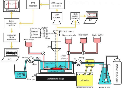 用于药物递送系统、生物成像和再生医学的纳米颗粒进入人体后会从组织迁移到淋巴管,因此有必要弄清纳米颗粒与淋巴管之间的相互作用。尽管已经开发了在体内观察纳米粒子通过淋巴管流动的技术,但还没有方法可以在体外以更详细和定量的方式评估纳米粒子的流动。因此,进行了研究以开发离体淋巴管腔灌注系统,以确定纳米颗粒如何在淋巴管中移动以及它们如何影响淋巴管的生理运动。