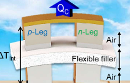 普通的热电器件通常具有支撑热电半导体的刚性陶瓷基板,这使得它们难以在弯曲表面上使用,而在柔性热电器件中,与陶瓷基板相反,聚合物材料封装了热电半导体,从而允许器件弯曲容易地。当这种设备戴在身上时,可以自动发电,它也有可能用作便携式空调。因此,柔性热电器件在可穿戴电子设备领域备受关注。然而,用于生产柔性基板的高分子材料具有高导热性,因此不能在设备的两端阻挡热量。因此,迄今为止生产的柔性器件存在着无法与具有刚性基板的商用热电器件相媲美的致命缺点。