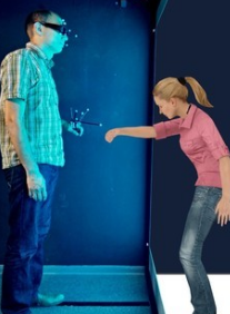在他们的研究中,研究人员分析了大脑识别动作的机制。为此,他们向测试对象展示了两种不同的动作:拳打和招呼手势,称为“拳头撞击”,尤其是年轻人。研究人员尽可能切合实际地安排了方案。在面对测试对象的屏幕上显示了与实际大小一样的化身。使用3D眼镜,受试者可以在三个维度上看到他们的虚拟伴侣–化身的运动似乎在他们的伸展范围内显现出来。