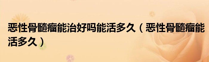 大家好,linda来为大家解答以上的问题。恶性骨髓瘤能治好吗能活多久,恶性骨髓瘤能活多久很多人还不知道,现在让我们一起来看看吧!