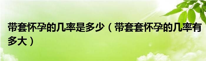 大家好,linda来为大家解答以上的问题。带套怀孕的几率是多少,带套套怀孕的几率有多大很多人还不知道,现在让我们一起来看看吧!