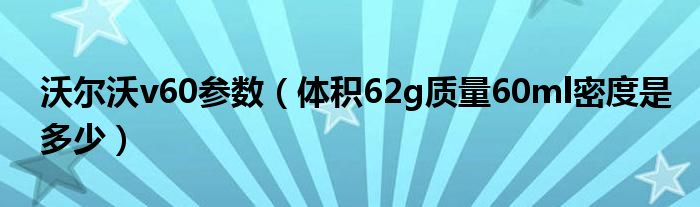 大家好,小常来为大家解答以下问题,对于沃尔沃v60参数,体积62g质量60ml密度是多少很多人还不知道,今天让我们一起来看看吧!