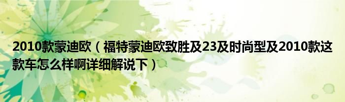 大家好,小常来为大家解答以下问题,对于2010款蒙迪欧,福特蒙迪欧致胜及23及时尚型及2010款这款车怎么样啊详细解说下很多人还不知道,今天让我们一起来看看吧!
