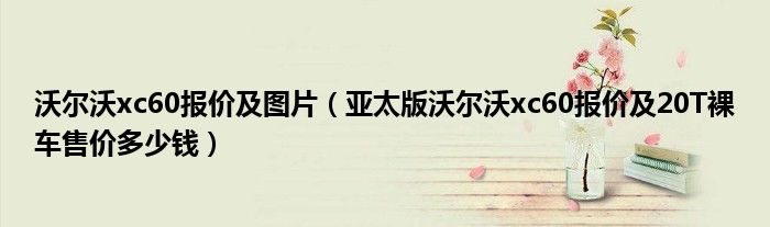 1,亚太版沃尔沃xc60报价 20T裸车售价多少钱 :沃尔沃xc60这款车,一般在收到价优惠一万元左右,地区不同价格有点差异的