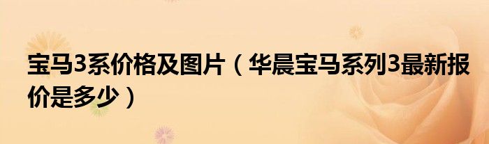 1,华晨宝马系列3最新报价是多少:型号:华晨宝马325i 舒适型 价格:42.42-46.10万 型号:华晨宝马320i 基本型 价格:30.08-33.80万 型号:华晨宝马325i 基本型 价格:41.88-42.38万