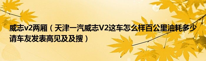 1,天津一汽威志V2这车怎么样百公里油耗多少请车友发表高见 搜:垃圾车不是很省油7个左右作为代步可以买