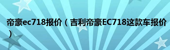 9,帝豪EC718现在价格多少 :帝豪EC718 1.8MT 标准型 7.98万 当地报价 帝豪EC718 1.8MT 尊贵型 9.68万 当地报价 帝豪EC718 1.8MT 舒适型 8.28万 当地报价 帝豪EC718 1.8MT 豪华型 8.98万 当地报价 帝豪EC718 1.8MT 旗舰型 11.18万 当地报价在这个价格的基础上还可以小刀在2000-3000元