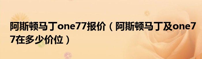 1,阿斯顿马丁 one77在多少价位:英国起售价125万英镑、国内起售价约4500万人民币起。