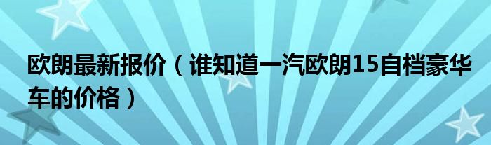 大家好,小常来为大家解答以下问题,对于欧朗最新报价,谁知道一汽欧朗15自档豪华车的价格很多人还不知道,今天让我们一起来看看吧!