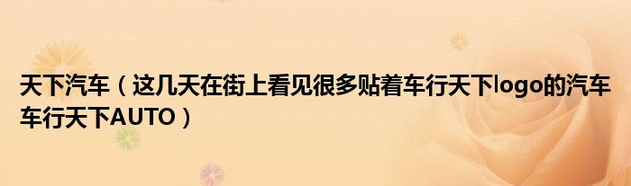 大家好,小常来为大家解答以下问题,对于天下汽车,这几天在街上看见很多贴着车行天下logo的汽车车行天下AUTO很多人还不知道,今天让我们一起来看看吧!
