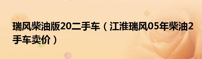 4,江淮瑞风柴油车有20排量的吗 :没有的,我们厂的瑞风柴油版以前是现代2.5L柴油发动机,现在是2.8L柴油机,主要运用五十铃技术,内部代号Y001
