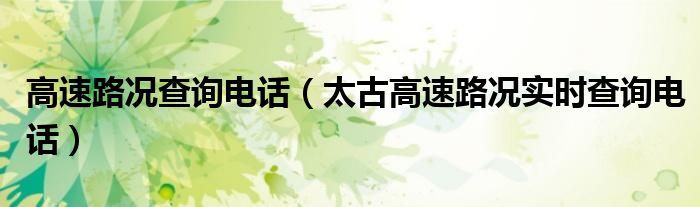 1,太古高速路况实时查询电话:12122路况查询方法均可快速、准确、实时查询高速路况信息,如在高速遇到事故,拨打全国高速公路紧急救援电话12122,也可拨打12122查询路况。