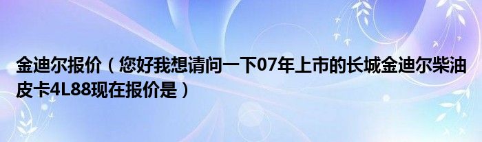 大家好,小常来为大家解答以下问题,对于金迪尔报价,您好我想请问一下07年上市的长城金迪尔柴油皮卡4L88现在报价是很多人还不知道,今天让我们一起来看看吧!