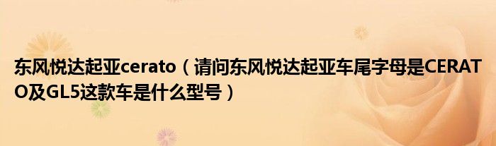 1,请问东风悦达起亚车尾字母是CERATO GL5这款车是什么型号 :CERATO,起亚 赛拉图,后面应该是“GLS”