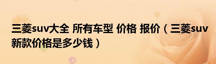 大家好,阳阳来为大家讲解下。三菱suv大全 所有车型 价格 报价,三菱suv新款价格是多少钱很多人还不知道,现在让我们一起来看看吧!