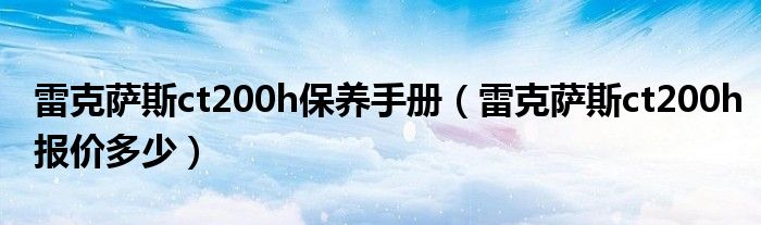 大家好,阳阳来为大家讲解下。雷克萨斯ct200h保养手册,雷克萨斯ct200h报价多少很多人还不知道,现在让我们一起来看看吧!