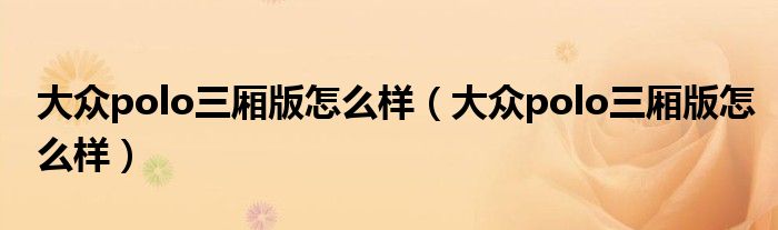 大家好,阳阳来为大家讲解下。大众polo三厢版怎么样,大众polo三厢版怎么样很多人还不知道,现在让我们一起来看看吧!