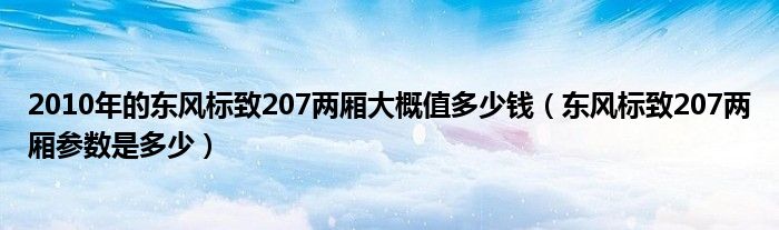 大家好,阳阳来为大家讲解下。2010年的东风标致207两厢大概值多少钱,东风标致207两厢参数是多少很多人还不知道,现在让我们一起来看看吧!