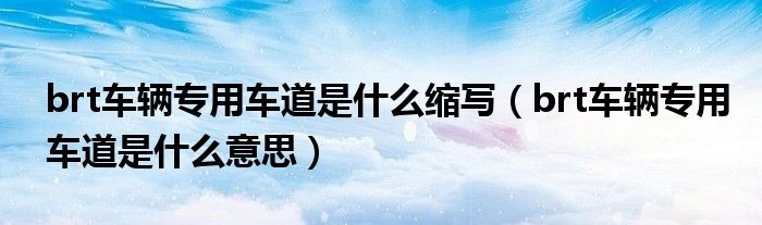 大家好,阳阳来为大家讲解下。brt车辆专用车道是什么缩写,brt车辆专用车道是什么意思很多人还不知道,现在让我们一起来看看吧!
