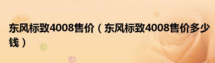 大家好,阳阳来为大家讲解下。东风标致4008售价,东风标致4008售价多少钱很多人还不知道,现在让我们一起来看看吧!