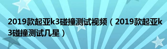 大家好,阳阳来为大家讲解下。2019款起亚k3碰撞测试视频,2019款起亚k3碰撞测试几星很多人还不知道,现在让我们一起来看看吧!