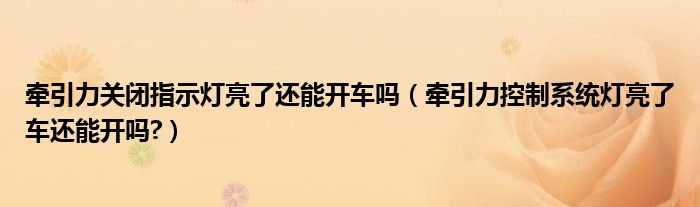 大家好,小美来为大家解答以上问题。牵引力关闭指示灯亮了还能开车吗,牵引力控制系统灯亮了车还能开吗?很多人还不知道,现在让我们一起来看看吧!