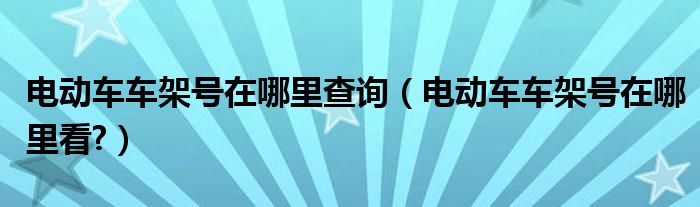 大家好,小美来为大家解答以上问题。电动车车架号在哪里查询,电动车车架号在哪里看?很多人还不知道,现在让我们一起来看看吧!