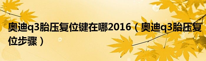 大家好,小美来为大家解答以上问题。奥迪q3胎压复位键在哪2016,奥迪q3胎压复位步骤很多人还不知道,现在让我们一起来看看吧!