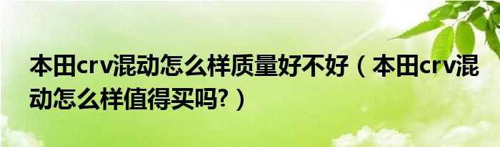 大家好,小美来为大家解答以上问题。本田crv混动怎么样质量好不好,本田crv混动怎么样值得买吗?很多人还不知道,现在让我们一起来看看吧!