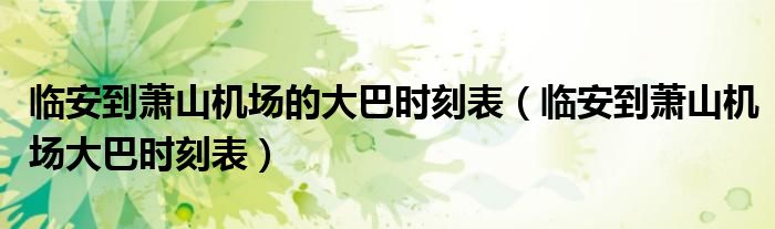 关于临安到萧山机场的大巴时刻表,临安到萧山机场大巴时刻表这个很多人还不知道,今天菲菲来为大家解答以上的问题,现在让我们一起来看看吧!
